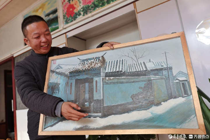 赵同恺的绘画技艺基本靠自学,几年前,他把已拆老宅的瓦檐土墙亲手“建”回画里。